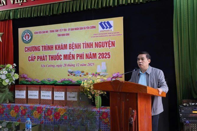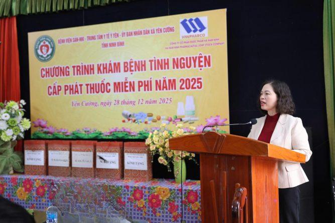 Sáng 28/12, tại Trạm Y tế xã Yên Cường, Bệnh viện Sản Nhi tỉnh Ninh Bình phối hợp với UBND xã Yên Cường và Công ty cổ phần dược phẩm Hà Nam Ninh tổ chức chương trình “Khám bệnh tình nguyện, cấp thuốc miễn phí” năm 2025. Chương trình có sự tham dự của đồng chí Phạm Thị Phương Hạnh – Tỉnh ủy viên, Giám đốc Sở Y tế; BSCKII. Phạm Văn Dậu – Giám đốc Bệnh viện; BSCKII. Phạm Ngọc Hà – Phó Giám đốc Bệnh viện Sản Nhi tỉnh Ninh Bình; cùng lãnh đạo xã Yên Cường, Trung tâm Y tế Ý Yên và đại diện doanh nghiệp đồng hành.