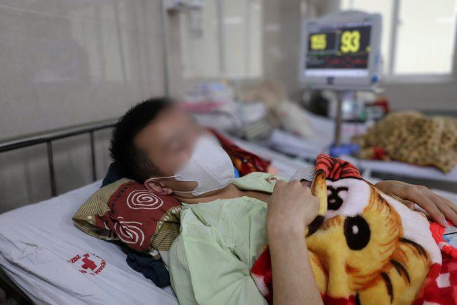 Anh Lý A T. có gọi cho những người cùng xóm trọ tới hỗ trợ, nhưng không ai biết đỡ đẻ nên anh trực tiếp đỡ đẻ cho vợ, sau đó lau khô người cho con rồi dùng dao lam sạch cắt dây rốn. Sau sinh thấy con khóc yếu, tím tái, thở khó nên anh đưa con tới bệnh viện địa phương cấp cứu. Do tình trạng nguy kịch nên bệnh nhi được chuyển tuyến tới Bệnh viện Sản Nhi Tỉnh Ninh Bình. Thời điểm tiếp nhận, trẻ có biểu hiện suy hô hấp, hạ thân nhiệt, cơ thể tím tái, SpO2 75%, phổi thông khí kém, trên mặt và chân có các vết bầm, phản xạ sơ sinh yếu.